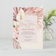 Boho Handflatan-babyduschinbjudan med modern kalligrafi och trendig torkade löv, spjut och blommor från sol. Detta är en vattenfärgskonstruktion i varma jordar färg av dammig vid ro rosa terracotta-lersten, bränd sienna och sand. Kortets baksida har en motsvarande tvättat vattenfärg. Trendiget boho rustic chic design - perfekt för en könsneutral babydusch för en pojke eller en flicka. Bläddra i butiken för mer stilar och samordna saker i Boho Handflatan-samlingen.