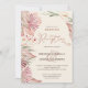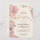 Boho Handflatan bröllopsinbjudan med elegant kalligrafi, trendig torkat handflatan löv, sol spjut och blommor. Detta är en vattenfärgskonstruktion i varma jordar färg av dammig vid ro rosa terracotta-lersten, bränd sienna och sand. Kortets baksida har en motsvarande tvättat vattenfärg. Trendig boho rustic chic design. Bläddra i butiken för mer stilar och samordna saker i Boho Handflatan-samlingen.