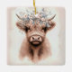 Boho Highland-ko med bröllopsblomkrona Julgransprydnad Keramik