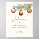 Minimalistisk vinter bröllopsdusch välkomstskylt affisch med akvarelltallgren dekorerad med julgranskulor.