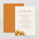 Modern rustic boho blomster vattenfärg solrosor elfenben kräm terrakotta bröllop gäst informations detaljer inbjudan infogningskort med en enkel handskriven typsnittsstil.