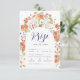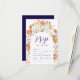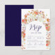 Boho höstbröllop RSVP-kort med vildblomsvalv – marinblå och vit Blommig bröllopsbekräftelse bifogad kortmall