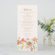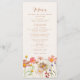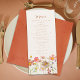 Ge en touch av vild, höstlig skönhet till din bröllopsbord med denna Boho Fall Wildflower Meadow Wedding Menu. Inspirerad av färgerna och texturerna på en soldränkt äng i slutet av hösten, har denna design handmålade akvarellblommor i jordnära toner av bränd orange, terrakotta, gyllene gult, plommon, korall, persika och mjuk rosa. Layouten kombinerar ett flödande, elegant manus med modern men avspänd typografi, vilket skapar en drömlik balans mellan natur och elegant sofistikering. Perfekt för höstbröllop med en rustik bohemisk, trädgård eller rustik känsla, ger denna meny en personlig, konstnärlig touch till din mottagning. Designad med originalkonst av Catherine Sweetman, är den helt anpassningsbar för