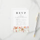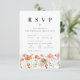 Detta boho höst rustika Wildflower blommiga bröllop RSVP inklusionskort som inkluderar måltider, antal deltagare och födoallergier är det perfekta tillägget till din bröllopsinbjudan, designat för att sömlöst komplettera den bohemiska charmen i din fest. Med handmålad akvarell äng med vilda blommor i varma, höstliga nyanser av bränt orange, terrakotta, lila, gul, korall, bränd umber, persika och mjuk rosa, tillför detta kort en touch av elegans och nyckfullhet. Med en lättanvänd mall kan du enkelt anpassa RSVP-detaljerna för din speciella dag. De vackra bohemiska rustika blommorna skapar en förfinad men ändå naturinspirerad vildblomsäng-estetik, medan den eleganta skrivstilstypografin tillför en modern kontrast. Designat med originalkonst av Catherine Sweetman, f