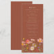 Ge en touch av vild, höstlig skönhet till din bröllopsbord med denna Boho Fall Wildflower Meadow beige och bränd orange bröllopsmeny. Inspirerad av färgerna och texturerna på en soldränkt äng i slutet av hösten, har denna design handmålade akvarellblommor i jordnära toner av bränd orange, terrakotta, gyllene gult, plommon, korall, persika och mjuk rosa. Layouten kombinerar en flödande, beige elegant modern men avspänd typografi, vilket skapar en drömlik balans mellan natur och elegant sofistikation. Perfekt för höstbröllop med en rustik bohemisk, trädgårds- eller rustik känsla, ger denna meny en personlig, konstnärlig touch till din mottagning. Designad med originalkonst av Catherine Sweetman