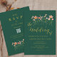 Boho Höst Vildblomma Bröllopsinbjudan med RSVP QR-kod Mörk Smaragdgrön, Terrakotta Rost & Guld