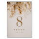 En romantisk, modern fotorealistisk höstbröllopsbordskort med en neutral torkad blomsterbukett i vete, ocker och roströda nyanser.