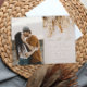 En romantisk, modern fotorealistisk höstbröllops rädda datum med en neutral torkad blomsterbukett i vete, ocker och rosttoner. Klicka för att redigera och anpassa denna design med ditt foto och detaljer.