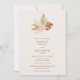 Vacker höstbröllopsinbjudan med en Boho-blomsterarrangemangdesign och terrakotta-text och accenter.