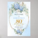 Boho Hydrangeas Dammblå 80-års välkomstskylt Poster