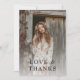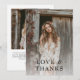 Säg "Kärlek & tack" med detta hjärtliga bröllopsdusch foto tackkort. Dess rustika boho-design och eleganta typografi gör det perfekt för att fira resan från Fröken till Fru. Idealiskt för alla årstider—höst, vinter, vår eller sommar—detta minimalistiska kort tillför värme och charm utan att bryta banken.