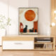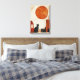 Modern boho-konst med en minimalistisk katt-silhuett mot en djärv abstrakt sol och geometriska former. De varma terrakotta-nyanserna och den texturerade bakgrunden skapar en mysig och konstnärlig atmosfär med en modern kant.