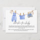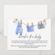 Ett vackert boho klädstreck baby shower bok förfrågan kort. Besökare uppmanas att ta med en helt ny eller varsamt använd barnbok istället för ett kort.