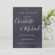 Med signaturstilnamn kan detta eleganta krita spara datum-kort anpassas med din speciella bröllpsdagsinformation i chic vit bokstav. Designad av Thisisnotme©
