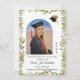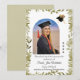 Distinctive boho design for your college graduation announcement. Natural leafy border surrounds your photo and graduation information. Further enhanced with a grad cap adorned with a golden bow. The photo and all text are easily changed with the template. Selecting “Personalize this design” offers you several edit options to easily change the text (wording, plus type font, color, size, position) and to edit the design elements, if desired. You may also want to scroll down to the section “Transfer design to a product” for a few suggestions about other items this design can be used on.