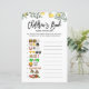 De här barnens bok-emoji. Lägg till den här roligten och det botaniska babyduschspelkortet till evenemanget. Den har vattenfärgade illustrationer av citroner och grönt. Du kan anpassa kortet genom att lägga till bakåttext. Kortet med märkvärdeschimi är perfekt för vår och sommarduschar.
