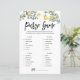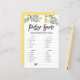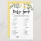 Vad är det i din väska? Lägg till den här roligten och det botaniska babyduschspelkortet till evenemanget. Den har vattenfärgade illustrationer av citroner och grönt. Du kan anpassa kortet genom att lägga till bakåttext. Kortet för citrondusch är perfekt för vår och sommartid möhippor.