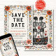 Boho Letterpress Skeleton Tarot save the date Invitation. Discover the delightful blend of our Skeleton and Tarot themes, featuring "The Lovers." Our Skeleton motif, selected for its romantic charm, embodies the timeless journey of soulmates uniting in an everlasting bond. This design transcends the physical realm, symbolizing a love that extends into eternity. Complemented by the mysticism of the Tarot, our invitation offers a playful, colorful aesthetic, ideal for lovers of eternal romance and gothic weddings. A colorful floral frame in letterpress style make the invitation more playful. Enhancing the invitation's elegance are the monograms, showcased on both sides, adding a stylish touch to this enchanting design. The wording is completely editable. You can change size, color, font, position in page.
