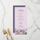 Gör din bröllopsfest mer magisk med vår förtrollande Boho-lila blomsterbröllopsmeny. Detta exklusiva menykort har en charmig design prydd med ljuslila peonior, vilket skapar en drömsk och romantisk atmosfär för din fest. Det bohemiskt inspirerade blomstermotivet ger ett elegant tillskott till dina receptionsbord, medan den anpassningsbara texten låter dig visa upp dina läckra menyalternativ med stil. Varje meny är tryckt på högkvalitativt kartongpapper, vilket säkerställer en lyxig presentation som kommer att imponera på dina gäster. Sätt tonen för en oförglömlig middagsupplevelse med vår Boho-lila blomsterbröllopsmeny.