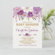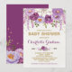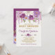 Vacker inbjudan till boho-inspirerad baby shower med elegant akvarelldrömmfångare och vackra violetta och lila blommor