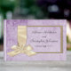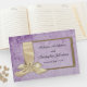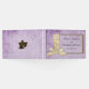 Den här charmerande lila bröllop gäst bok har ett tydligt boho-tema, med designen som har ett mycket rustiskt utseende med en tongivande lila parchment-design som sin arbetsyta. På framsidan finns ett faux wooden ram, som dekoreras med ett stort, vitt satingband nedåt på den lämnat sidan. Det finns också ett par bröllop klockor på baksidan. All information kan vara personlig till kostym.