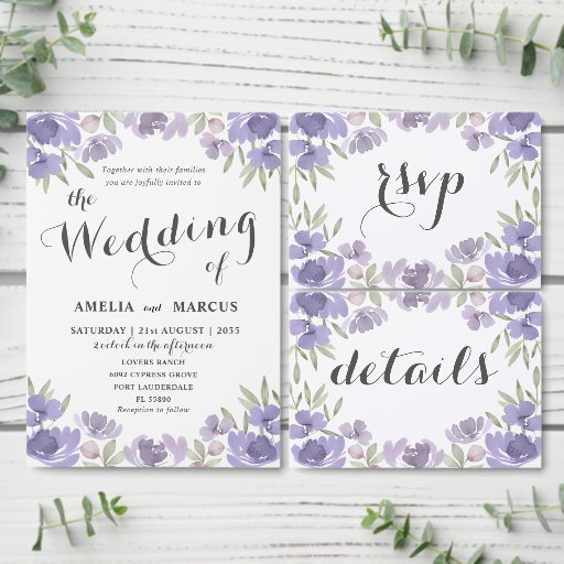 Boho Lila Watercolor Blommigt Bröllop OSA Kort