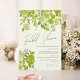 Fira den blivande bruden med vår fantastiska Rustic boho Blommigt Design Inbjudningskort för möhippan. Den här fulländade inbjudan innehåller klara handmålade blommor i blad av kalkgrönt, accentuerade med lush grönt löv, skapande ett livligt och romantiskt estetiskt. Det moderna skriptteckensnittet i eleganten ger en smula sofistikering som kompletterar det sansade temat för blommigt. Idealisk för en sommar eller fall-möhippa.