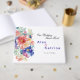 Denna bröllopsgästbok är ett visuellt mästerverk, prydd med vackra akvarellfärgade vårblommor i en livfull palett av rött, blått och rosa.