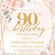 Boho Ljusa rosa Guld-Blommigten 90:e födelsedag In Inbjudningar