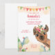 En vattenfärgad illustration av ett lama och en cacti ger dessa vackra födelsedagsfest inbjudan en boho känsla.