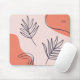 Den här moderna musknappen för boho-personlig har en abstrakt löv-linjekonst. En färg-palett i trendig av jordisk orange och marinblått. Lägg till ditt namn för en anpassningsbar musknapp bara för dig.