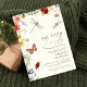 This whimsical watercolor baby shower invitation features cute insects (beetle, dragonflies, butterfly) & pretty flowers.