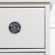 Denna elegant boho keramisk knopp har en guld mandala med en marin blå bläck struktur.