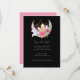 Den här Boho-inbjudan har vattenfärgshalvmånen måne med rosa blommor, guld-kristaller och vita fjädrar och skapar den perfekten för en mystisk eller metafysisk andlig union, handfixering eller bröllop.