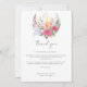 Boho-bröllopsinbjudan innehåller vattenfärgshalvmåne måne med rosa blommor, guld kristaller och vita fjädrar, skapar perfekten för en mystisk eller metafysisk andlig union, handfixering eller bröllop. Bakgrunden färg och typsnitt kan enkelt ändras för att motsvara dina behov.