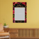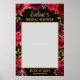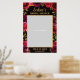 Detta är bohemisk bröllopsdusch foto rekvisita har djupa röda akvarellrosor och svart bakgrund och fin kalligrafi bokstäver