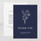 Boho Minimalist Botanicals Navy Blue Bröllop Tack Kort