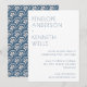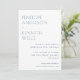 Den här contemporaryns bröllopsinbjudan innehåller en minimalistisk sammansättning och modern typografi i blått och vitt med ett snyggt blommönster på baksidan.