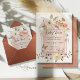 En vattenfärgsbåge är täckt med vackra blommor av jordisk varm neutralt med riklig grönt, sienna och brunt löv. "BOHO Modern Arch Fall Blommigt Butterfly Flicka Shower-inbjudan." Trendigets jordtonspalett färg med persikor, koppar, terracotta, bärnstensfärgad, sienna och muterad sage grey med elfenben och persikoblommor. All teckning har målats och grafiskt designat av den internationellt licensierade konstnären och designern Audrey Jeanne Roberts. Upphovsrätt.