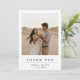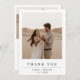 Det här Boho Modern Bröllop 2-foto-tacket-kortet har en romantisk utomhusmiljö med paret omfamnat i en öken på framsidan och ett solnedgångslandskap på baksidan.
