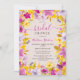 Fira kärlek med denna unika, handmålade blommigt inbjudningskort för möhippan. Den boho-moderna designen har klara nyanser av lila, grönt, lavender och gult och skapar en djärv och glad atmosfär på beige säsongsskal. De lösa blommigtarna med vattenfärg tillför stollig en liten aning, medan den faux glitzy guld glitter-konfekten ger en aning glamor. Det moderna typsnittet för skript i eleganten lägger till ett sofistikerat och snyggt inslag till inbjudan. Perfekt för ett bohemininspirerat firande, detta originalillustrerade inbjudan anger tonen för en glädjande och minnesvärd händelse.