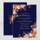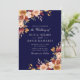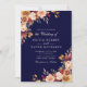 Boho Modern Marinblå Bränd Orange Blommig Bröllop Inbjudningar