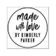 Tillverkad med kärlek självbläckande stämplar med en cirkulär ram, "tillverkad med kärlek" i borstad script-stil, med "i" i "med" prickad med ett litet hjärta. Nedan visas ditt namn i feta rustic-bokstäver. Namnet visas över två rader och kan ändras för att visa ett kortare namn eller ett företagsnamn. Perfekt för artister, tillverkare, bagare och småföretag! Denna självbläckande stämpel kan användas på visitkort, tack-kort, lådor, inslagspapper, etiketter, canvas och mer! Detta är den självbläckande gummistämpeln - välj hölje och bläckfärg enligt dina önskemål! En trästämpelversion av denna stämpel finns tillgänglig i min butik.