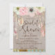 Bohemian Tribal-designen med vacker blommigt och fjädermotiv för detta vackra, rustiska inbjudningskort för möhippan.