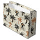 Lekfullt jungelmönstrat presentpåse med stiliserade apor och palmer i kol och terrakotta på en texturerad krämfärgad bakgrund. Whimsisk och jordnära med en handgjord bohoestetik, detta sömlösa mönster är perfekt för barn, djurälskare, safari-entusiaster och fans av roliga jungelteman.
