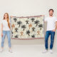 Playful jungle pattern blanket featuring stylized monkeys and palm trees in charcoal and terracotta on a textured cream background. Whimsical and earthy with a handcrafted boho aesthetic, this seamless design is ideal for kids, animal lovers, safari enthusiasts, and fans of fun jungle themes.