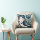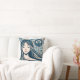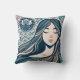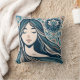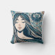 Boho Mosaic Woman Porträtt med Blommigt Blue Art Kudde