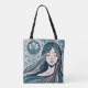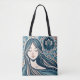 Boho Mosaic Woman Porträtt med Blommigt Blue Art Tygkasse