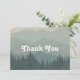 Ett övertäckt boho-kort med dammig blå och grönt berg och skogsbakgrund med vitt reflexteckensnitt på framsidan. Tom på motsatt sida för ditt meddelande.
