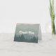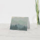 Ett böjt tackkort med dammiga grönt- och blåberg och skogsbakgrund täckt med vitt reflexteckensnitt på framsidan. Tom på motsatt sida för ditt meddelande.